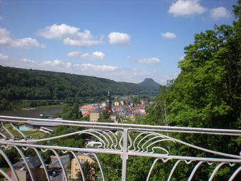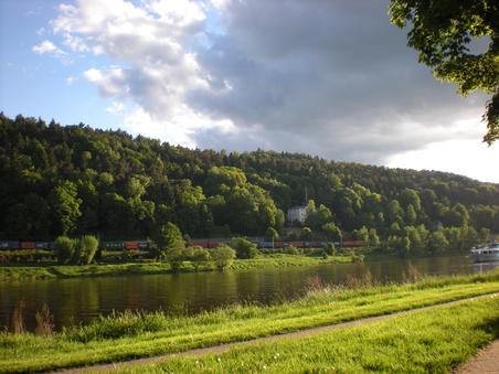 In May, we visited Bad Schandau in Saxony on the Elbe, just two weeks before the June floods. We always enjoy a stay in Bad Schandau because of its diversity and scenic beauty. If you take Dresden as the midpoint, Schmilka as the upriver endpoint and Meissen as the downriver endpoint, this stretch of the Elbe in Saxony is a tourist dream: vineyards, cliffs, bizarre rock formations, quite a few steamboat trips up and down, the National Park just above, and the cultural richness of Dresden. We had one day of glorious weather, with th rest changeable, but that's about what spring has been like in Prague, so we were not too surprised!